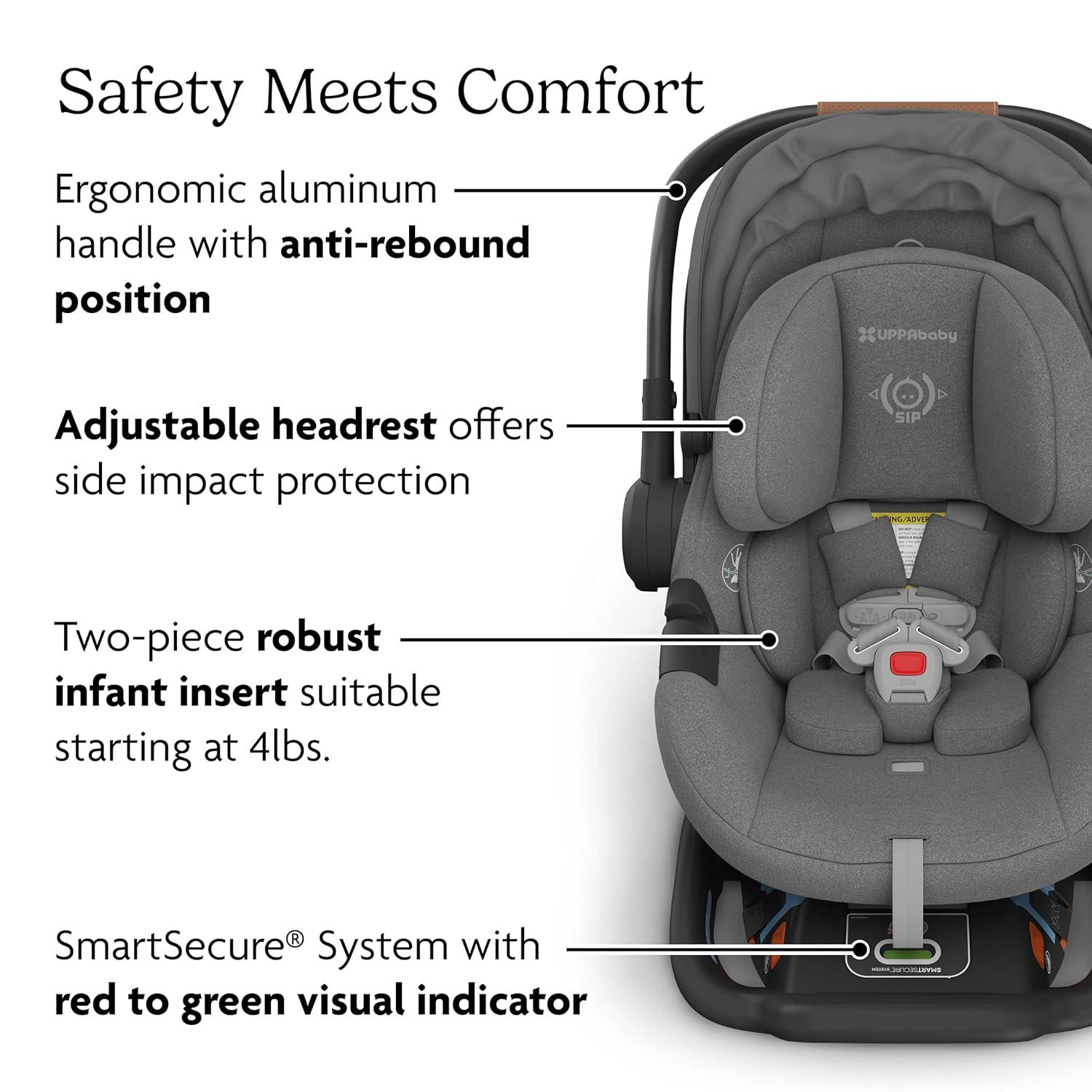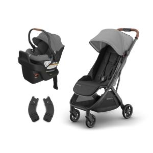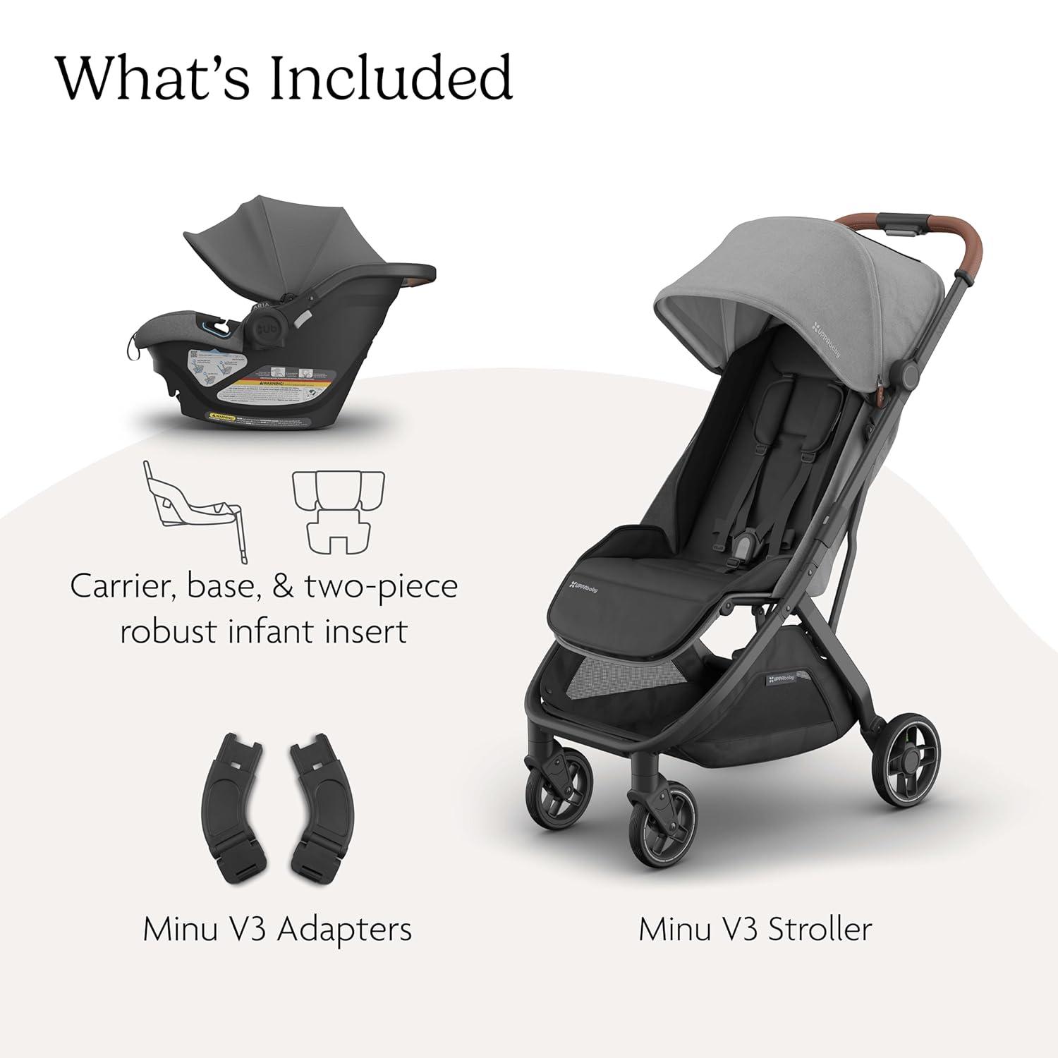 UPPAbaby Travel System, Includes Minu V3 Stroller + Aria Lightweight Car Seat Combo – Adapters, Car Seat, Base + Infant Insert Included – Greyson (Charcoal Mélange)(Greyson)