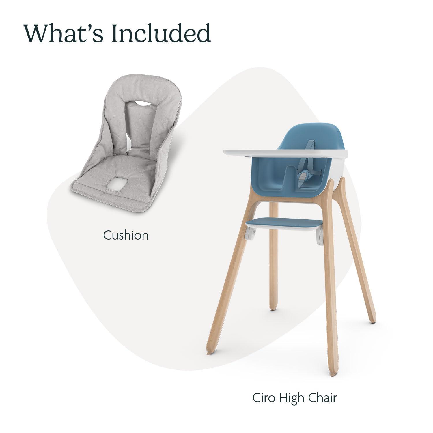 • UPPAbaby Ciro High Chair + Cushion Accessory Bundle, Sleek, Easy-to-Clean Design, Perfect-Fit Tray to Bring Baby to Table, Plush Cushion for Added Comfort, Machine Washable Fabric – Caleb (Steel Blue)