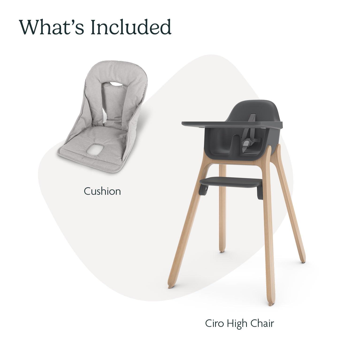 • UPPAbaby Ciro High Chair + Cushion Accessory Bundle, Sleek, Easy-to-Clean Design, Perfect-Fit Tray to Bring Baby to Table, Plush Cushion for Added Comfort, Machine Washable Fabric – Jake (Charcoal)