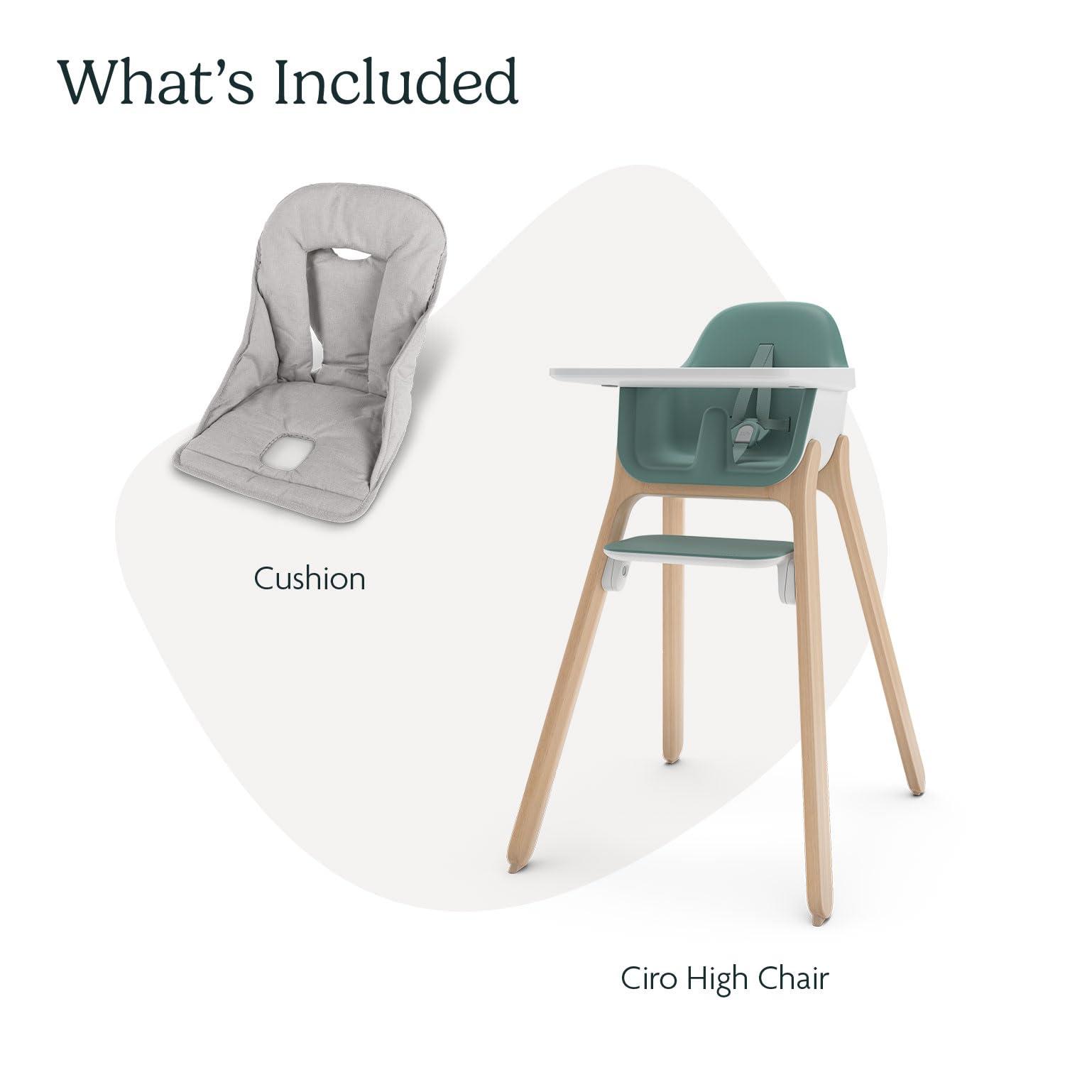 • UPPAbaby Ciro High Chair + Cushion Accessory Bundle, Sleek, Easy-to-Clean Design, Perfect-Fit Tray to Bring Baby to Table, Plush Cushion for Added Comfort, Machine Washable Fabric – Emrick (Green)