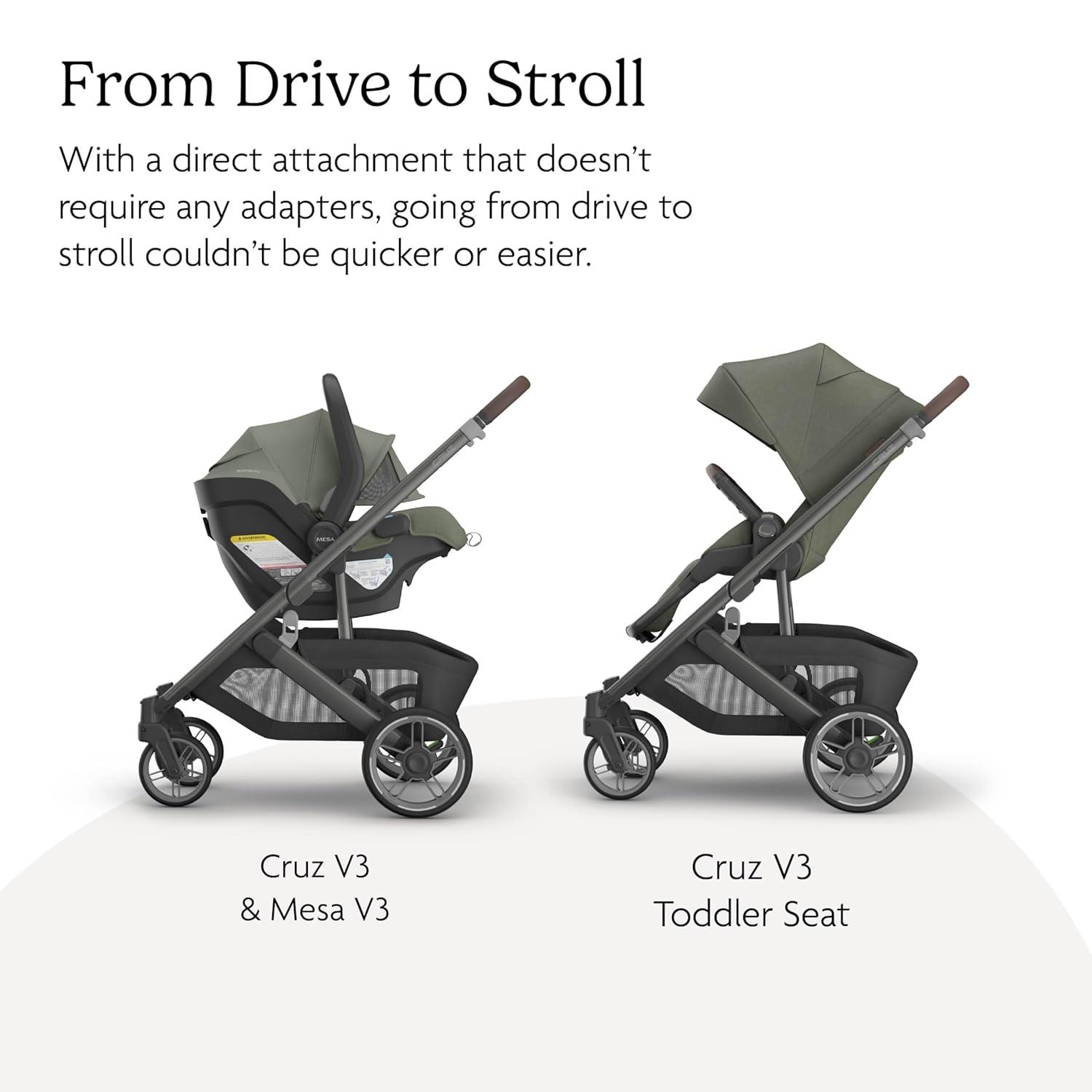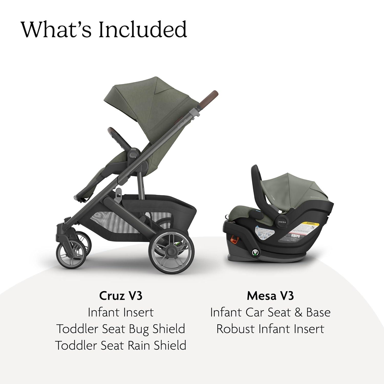 UPPAbaby Cruz V3 Stroller + Mesa V3 Car Seat Travel System Combo – Toddler Seat, Bumper Bar, Bug and Rain Shields, Car Seat Base, and Infant Insert Included – Evelyn (Meadow Green)(Evelyn (Meadow Green))