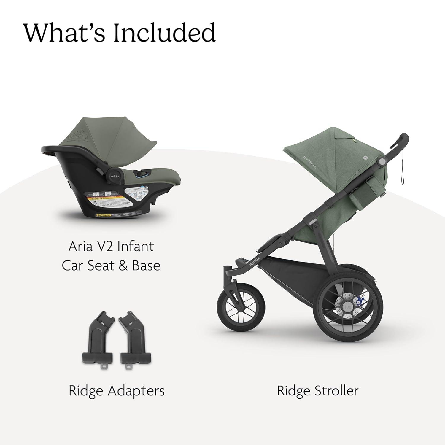 UPPAbaby Travel System – Ridge Stroller + Aria V2 Lightweight Car Seat Combo – Toddler Seat, Rain Shield, Bug Shield, Car Seat, Base with Load Leg + Infant Insert Included – Gwen/Evelyn (Green)