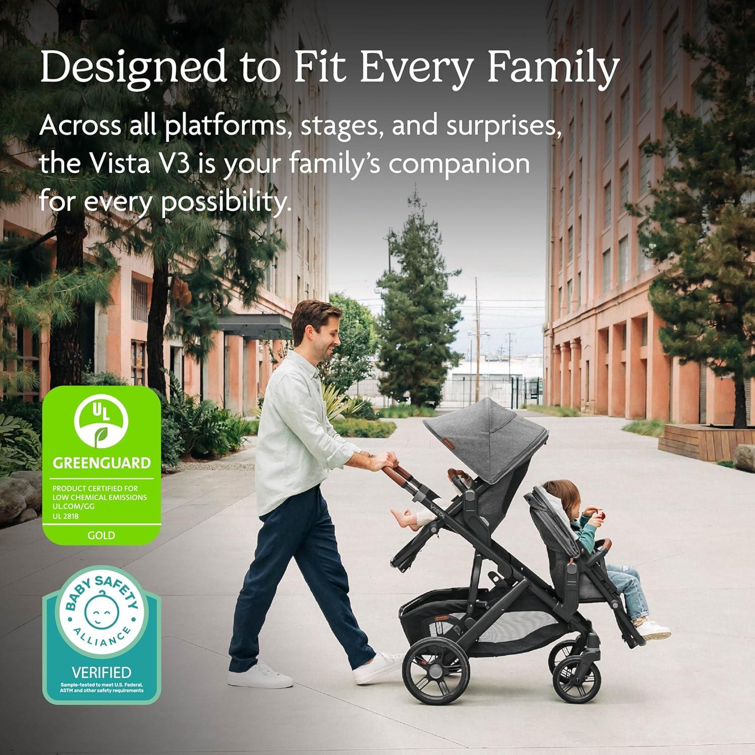 UPPAbaby Vista V3 Stroller – Full-Size Single-to-Double Stroller System – Toddler Seat, Bug Shield, Rain Shield, and Storage Bag Included – Gwen (Green Mélange/Carbon Frame/Saddle Leather)(Greyson (Charcoal Mélange))