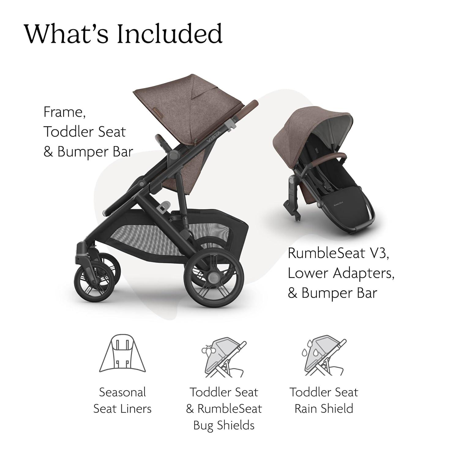 UPPAbaby Vista V3 Stroller + RumbleSeat V3 – Convertible Single-to-Double Stroller System- Toddler Seat, RumbleSeat Accessory, Adapters Included – Owen (Mocha Mélange/Carbon Frame/Chestnut Leather)