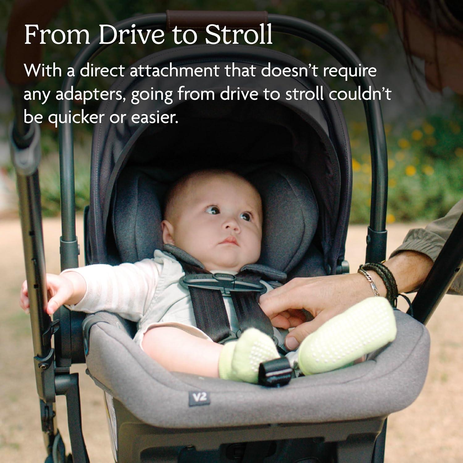 QUICK ATTACHMENT + REMOVAL: The Aria V2 Car Seat directly attaches to the Cruz V3 Stroller to create a stylish and simple solution that goes from drive to stroll. A release button under the Aria V2 carrier removes it from the Cruz V3 frame in a seamless motion. The reversible option allows baby to face you while strolling or turn the carrier to pull up to a table for mealtime.
