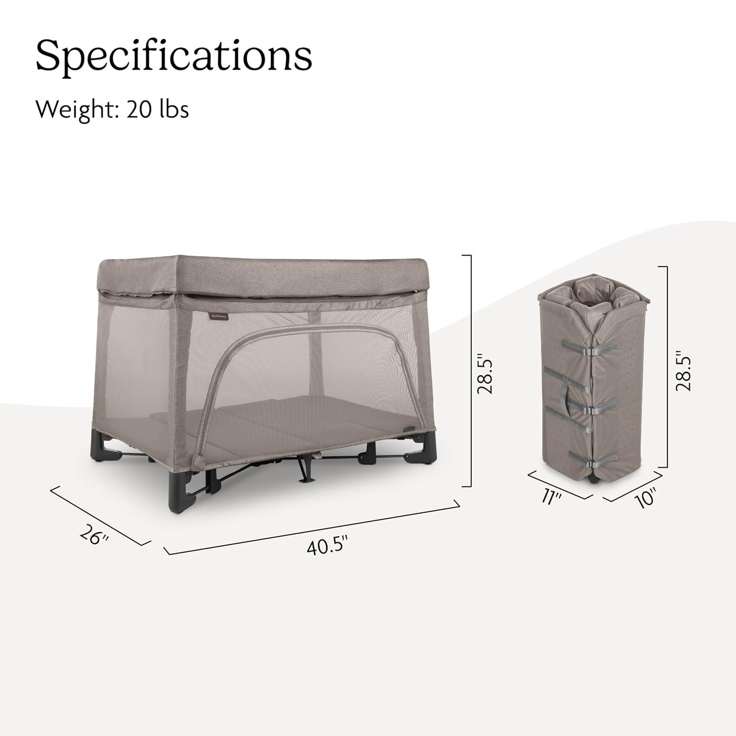 Travel and rest easy with the REMI, UPPAbaby’s first portable playard designed to help baby sleep soundly and safely. Featuring an air mattress (foam-free) and side zip panel giving parents a way to comfortably soothe their child to sleep. Its size, weight and quick set up turns into a go anywhere crib so adventures as a family become easier and more enjoyable. Folds and sets up in seconds with one-hand Triple layer air mesh mattress creates breathable, comfortable and healthier sleep environment for baby Zip open panel for a more comfortable access to soothe baby to sleep Easy to zip on mesh bassinet attachment for added ventilation and provides an elevated sleeping environment perfect for bedside Open, airy design provides clear views Above ground design to keep baby draft proof Durable, woven mélange fabric wraps around top rail for added comfort and softness Convenient storage bag included with pocket to store bassinet attachment Greenguard Gold Certified Playard: Suitable from birth to 35” tall Bassinet: Suitable from birth to 20 lbs Dims: 42″ L x 27″ W