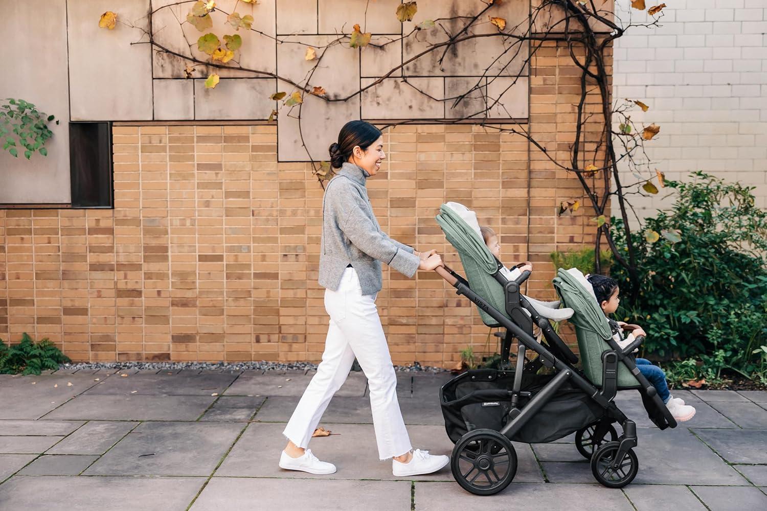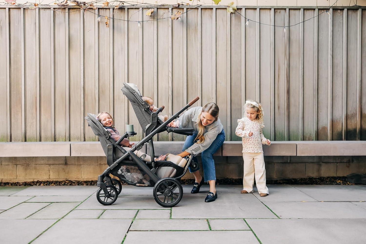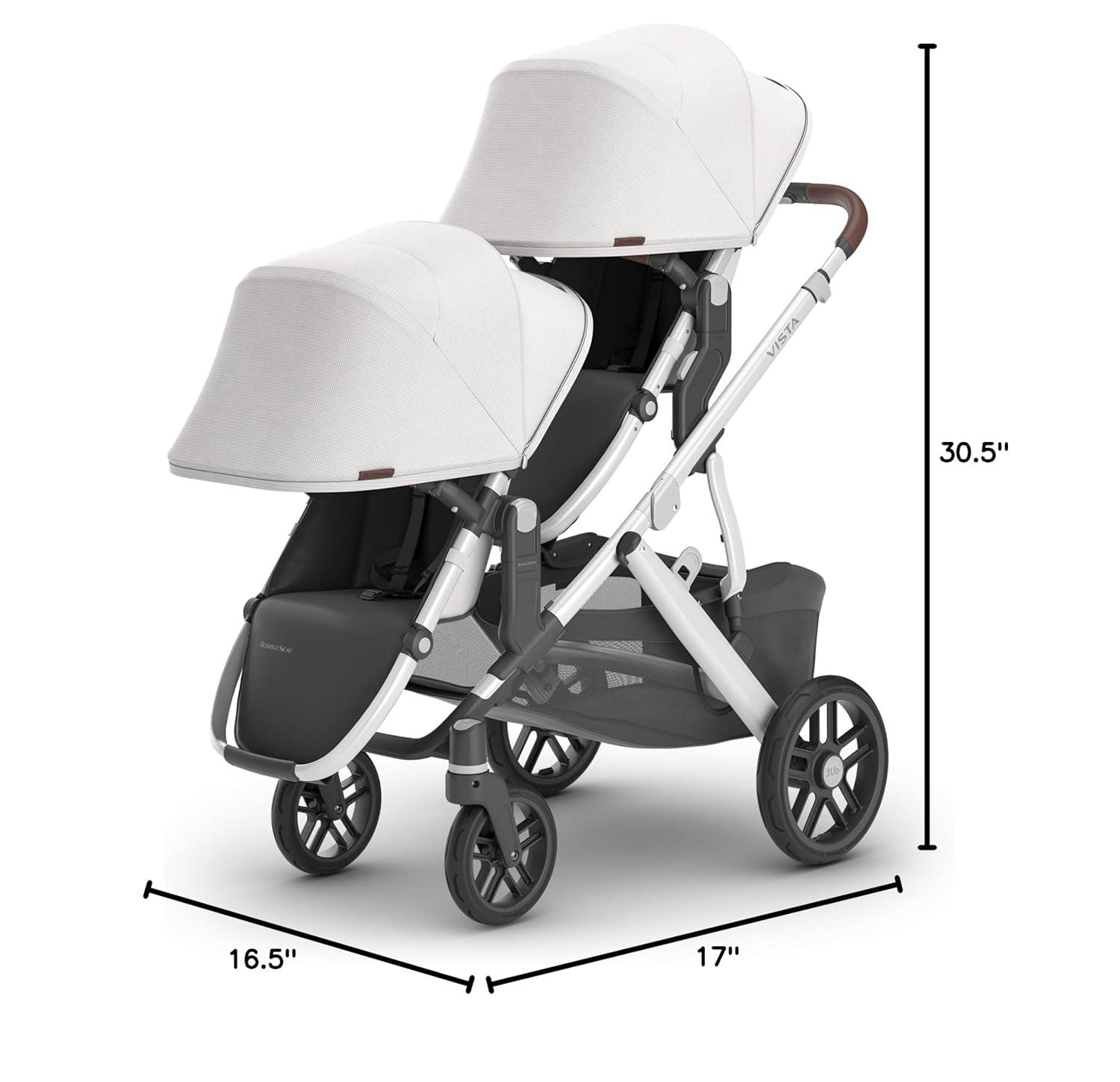 Directly attach this second seat to your Vista to easily accommodate two in tow. The RumbleSeat V2+ features an adjustable footrest and canopy and can be used both forward- and parent-facing. It’s the multitasking stroller seat solution you’ve been waiting for. Suitable for children from 3 months to 40 lbs or 36″, whichever comes first Extended zip-out canopy provides even more shade and protection from the sun Mesh panels make it easy to peek in while adding airflow Sliding shoulder adjustment allows the entire harness system to be tightened or loosened in a singular motion for a precise fit for growing babies Includes: Bumper Bar, Bug Shield, and quick attachment adapters to Vista